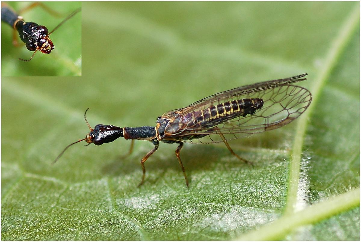 Stadi preimmaginali: Aspöck et al.,1991. Ampiezza dell’ala anteriore delle immagini: M da 7,5 a 8,5 mm., F da 8,8 a 10,5 mm.; gli adulti si trovano in natura tra maggio e giugno (luglio) (Aspöck et al.,1991). Stadio di svernamento: larva. Parassitoidi: Nemeritis sp. (iperparassitoidi: Perilampus polypori)